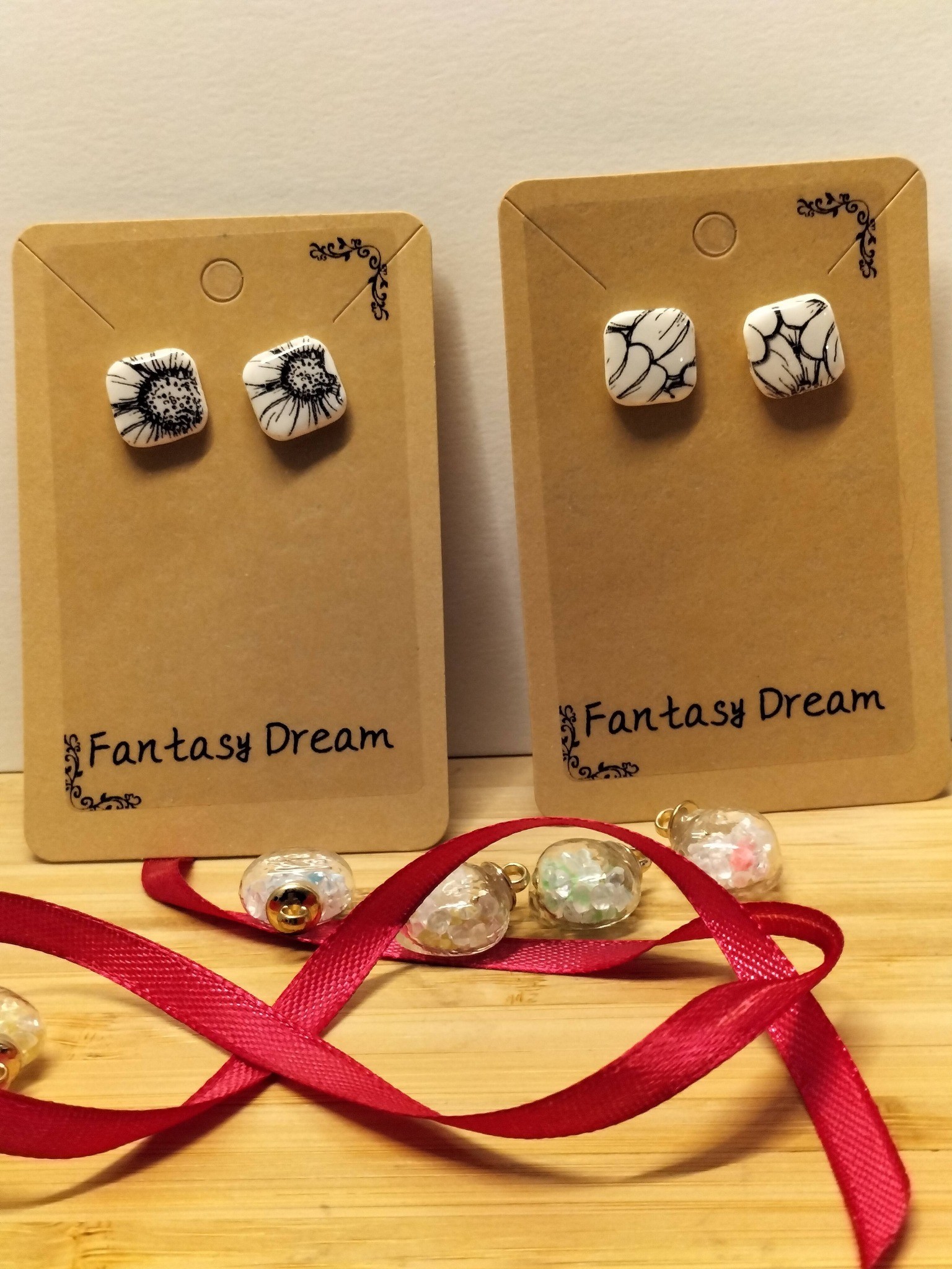 Boucles d'oreilles en puce motif fleurs Marguerite noir/blanc - Fait main